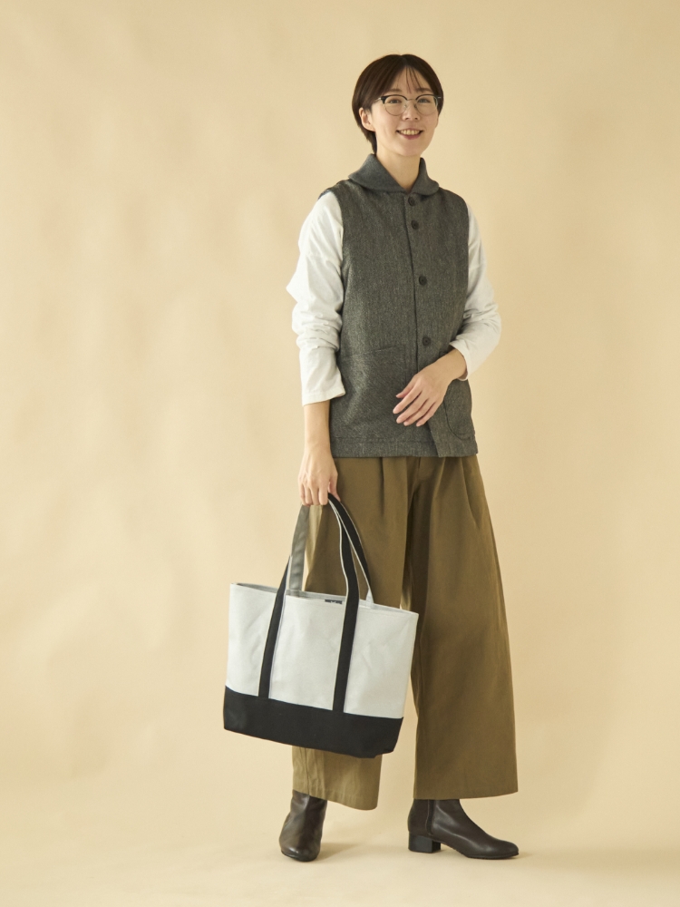 柔らかくてもしっかりした生地感なので、荷物をたくさん入れても問題ありません。カジュアルすぎないきれい目な帆布なので、大人女性も持ちやすい上品な雰囲気です。