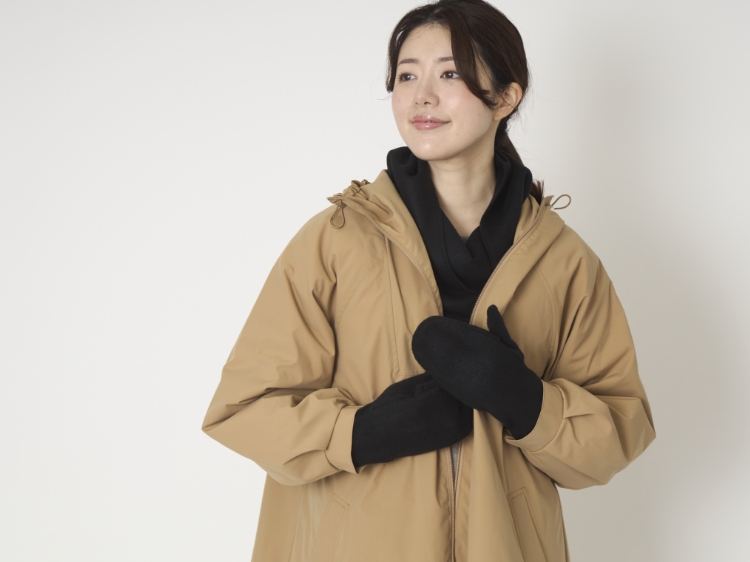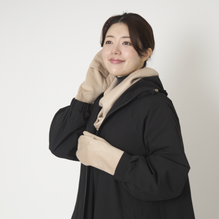 こちらのスヌードは、片側にスリットが入っているのがポイント。一般的なスヌードより着脱がしやすく、かぶるだけでサマになります。簡単にシルエットを整えられますし、かさばらないシルエットなのでアウターの下にも上にも着けやすく、色々なコーディネートが楽しめます。