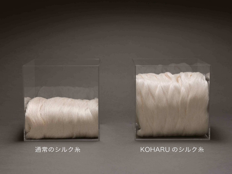 自社で独自開発した糸「KOHARU」は、シルクにふわふわ加工を施し、カシミアのような風合いを出した特別な糸。そんな糸を編み上げてから起毛させたのが、シルクフリースです。