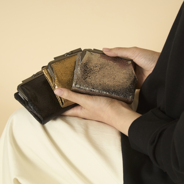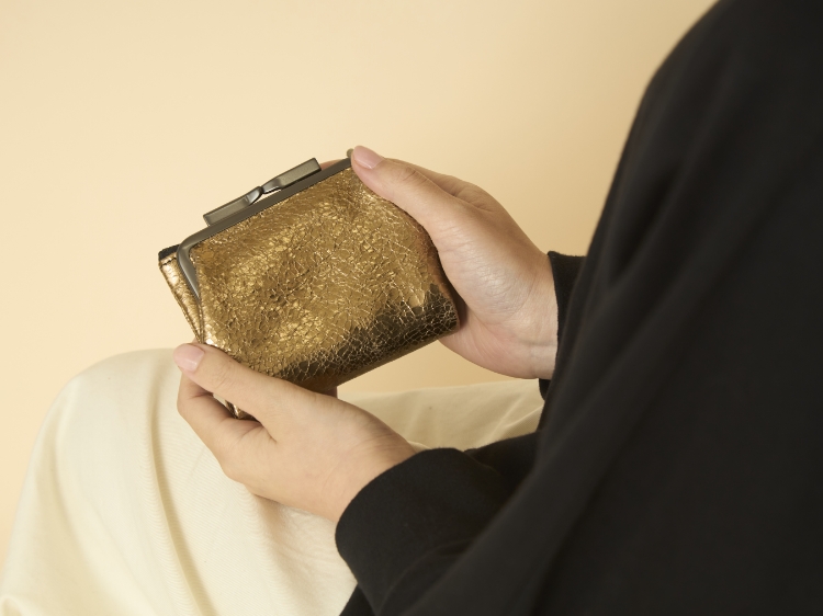 柔らかくて丈夫な山羊革に箔加工を施しています。