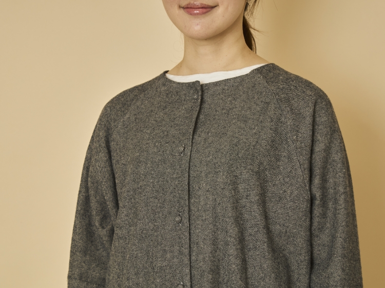 うっすらと起毛しているツイル生地は、綿の柔らかさや保温性と麻の通気性の良さという、それぞれの素材の良いところを活かし合います。特に秋冬シーズンは、体温であたためた空気をしっかりと繊維の中に留めて冷えを防止してくれるうえ、暖房による汗も素早く放出。屋内外の気温差にも対応してくれるバランスのいい生地なんです。