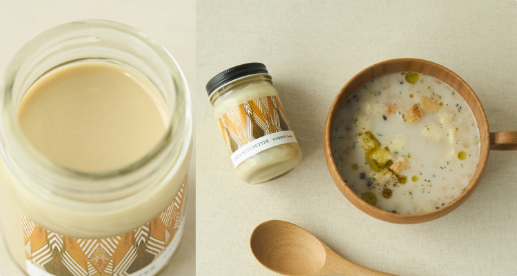 しっかりとしたコクと甘味のあるインド産カシューナッツを使用した「カシューバター」は、ミルキーな味わいが特徴。カレーやポタージュのコク出しにいい仕事をしてくれます。マスタードやレモン汁と和えてドレッシングにするのも◎。