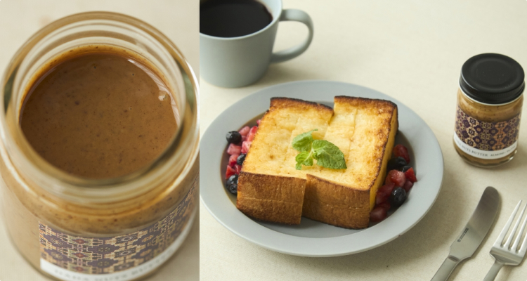 香りの濃いアメリカ産ビュート種を使用した「アーモンドバター」は、まさにマルチプレイヤー。トーストとの相性は言うまでもなく、野菜や蒸し鶏を和えたり、トマトソースの隠し味にしたりと朝昼晩の食卓で大活躍します。