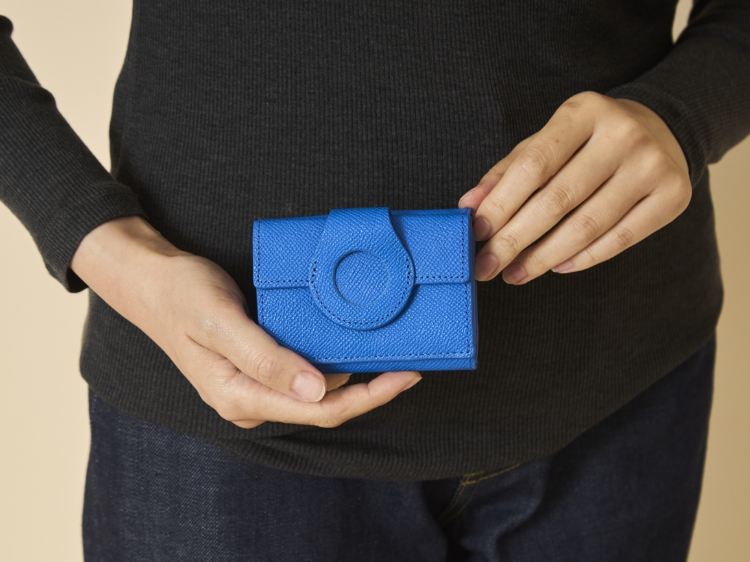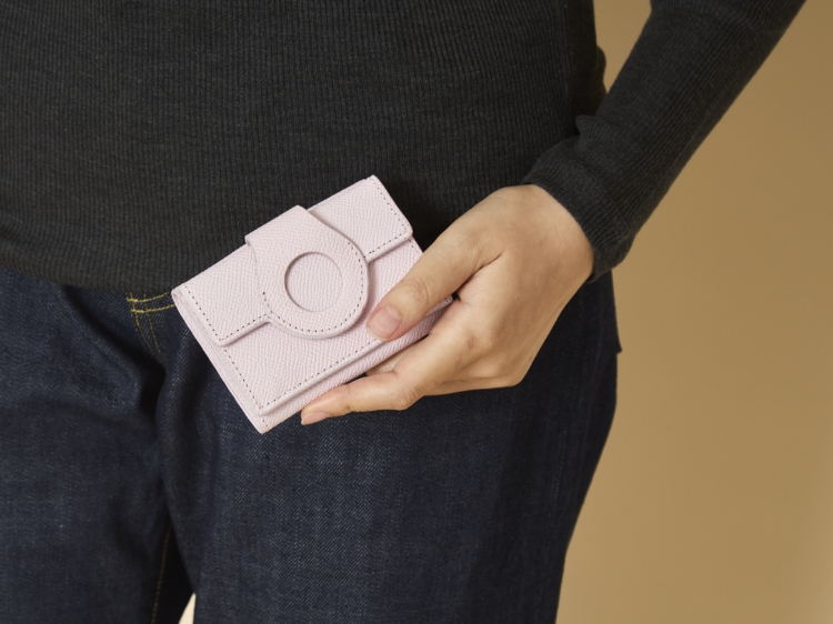 FERMI+(フェルミプリュスの三つ折り財布は、「世の中にない新しいアイデアをカタチにする」ことをコンセプトにしたブランドならでは。発色のいい革使いはもちろんですが、なにより目を惹くのは、丸いフラップ部分。実はこのパーツ、デザインとしても際立っていますが、お財布をスマートに管理するための機能も持っているのです。