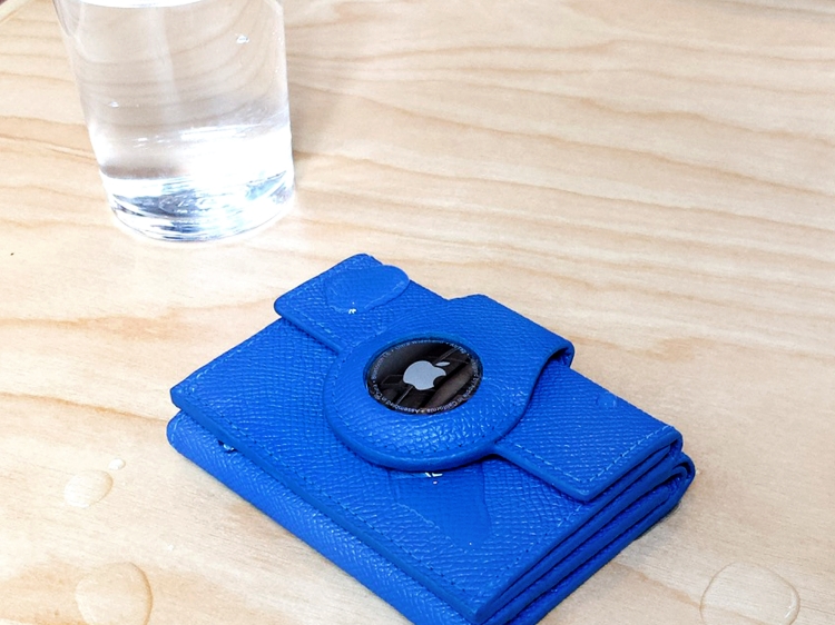 これまでは、小銭入れ部分に入れて持ち歩く方が多かったのですが、Air Tagによって小銭入れが膨らんでパンパンになってしまうというお悩みもありました。そこで、専用のタグ入れポケットをつくって、デザインとしても成立させているんです。
