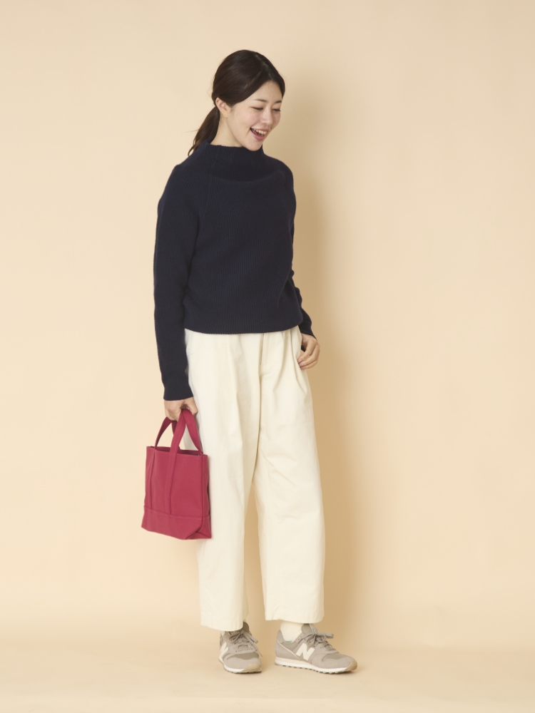 デザインはごくシンプルなので幅広いコーディネートに活躍。オンオフ問わず、パンツにもスカートにも合わせられます。ワイドパンツともバランスを取りやすい丈感です。