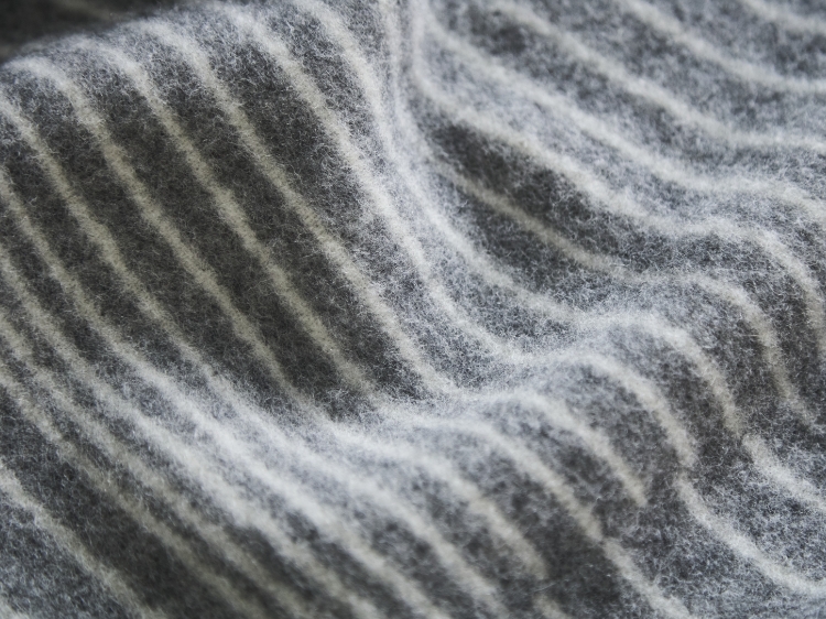 こちらの良さは柄だけではありません。チクチク感の少ない柔らかな肌触りもまた、特筆しておきたいポイントです。その秘訣は、こだわりをもって選ばれた100%ウールにあります。いずれの糸もEU圏内で紡績・染色されており、緯糸にはフィンランドの地元農場から仕入れたフィンシープ及びフィンシープ交雑種の羊毛繊維と、認証を受けた Wool Integrity NZ の繊維から紡がれたものを使用。経糸にも同じく認証を受けた南米産ウールが使用されています。