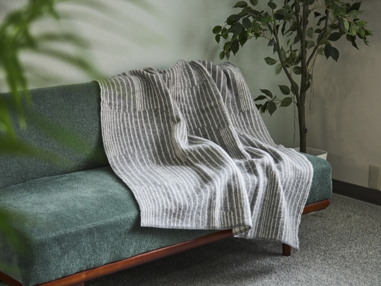 そして、羊の寄生虫被害を予防するためではありますが、どうしても動物に大きなダメージや苦痛を与えてしまう処置「ミュールシング」を行わず、自然な状態で飼育した羊から刈り取った「ミュールシングフリー」のウールを使用しているのも特徴。いうなれば、「羊にも優しいウール」で作られたブランケットです。