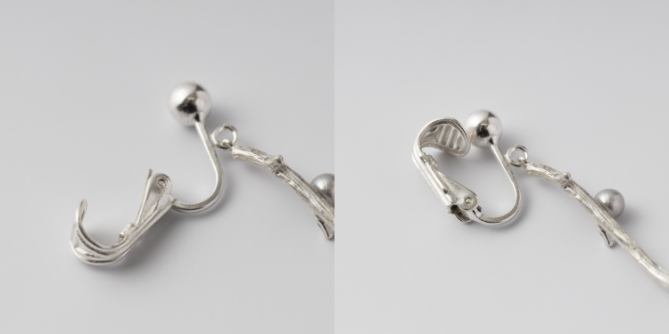 こちらのイヤリングはクリップタイプの金具を使用しているので、ネジバネ式に比べて着脱が簡単で痛くなりにくいと思います。