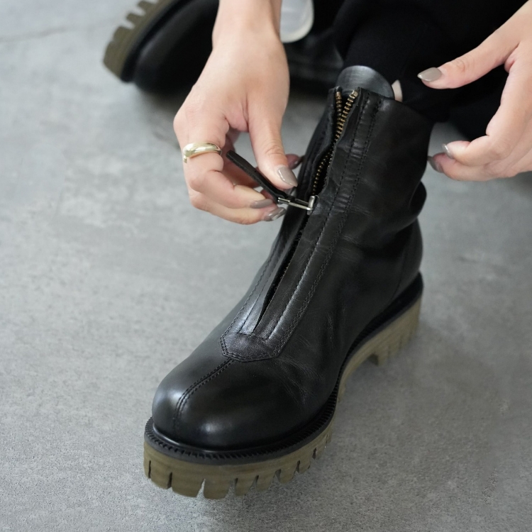 冬はブーツを履きたいけれど、着脱が面倒という方も多いでしょう。こちらのブーツはセンタージップになっているので、シューレースのあるブーツや、後ろやサイドにジップがあるブーツに比べて着脱が簡単。