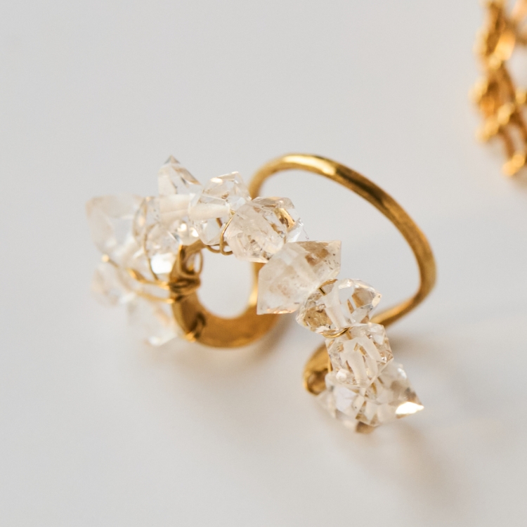 PLAFU/bloom gems earcuff with Herkimer Diamond レア天然石ハーキマーダイアモンドのイヤーカフ