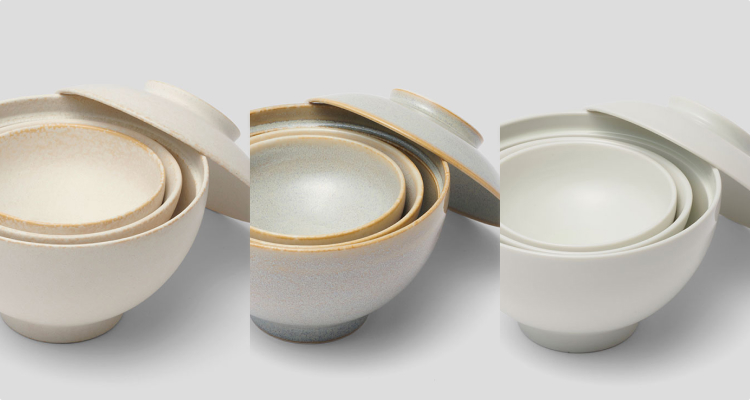 きほんのうつわの「よりそう入れ子碗」は、凛とシンプルな器たちのセットです。だから、和食にも洋食にも合います。器の使い方を工夫すれば、パン派の朝食にもしっくり馴染む使い勝手の良さも強み。日常の多くを占める「何でもない日」にシンプルに寄り添って、豊かなごはんを叶えてくれる丁度良さを体感していただけたら幸いです。