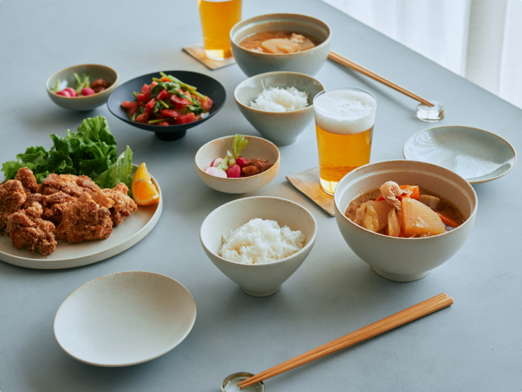 こちらは、忙しい現代人に寄り添う料理やシンプルながら豊かさを感じる令和の家庭料理の提案で、SNSを中心に大きな支持を集める料理家・管理栄養士の長谷川あかりさんと「きほんのうつわ」がコラボした商品です。開発のきっかけは、長谷川さんの「毎日何も考えず、ただ並べるだけで食卓が完成する器が欲しい」という思い。