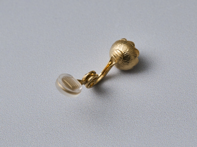 ネジ式の金具は痛みが出て、長時間着けられないこともありますが、こちらのイヤリングの金具はクリップタイプ。シリコンカーバーが付属しており、耳を面で優しく挟むので、痛みが出ず一日中快適に着けられます。耳たぶの厚みに合わせて挟み具合の調節がしやすく、着けやすく外れにくいのも魅力です。