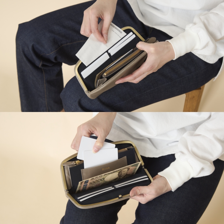 普段は長財布だけれど、小さなバッグを使うときや、旅行の際にはミニ財布を使うという方は多いと思います。ただ、頻繁に移し替えをするのが面倒だったり、出先で必要なカードがないことに気づいて慌てたり、とお財布の2個づかいはストレスもつきもの。でも、こちらなら、ひとつのお財布をシーンによって使い分けできるので、そんなストレスがなくなります。