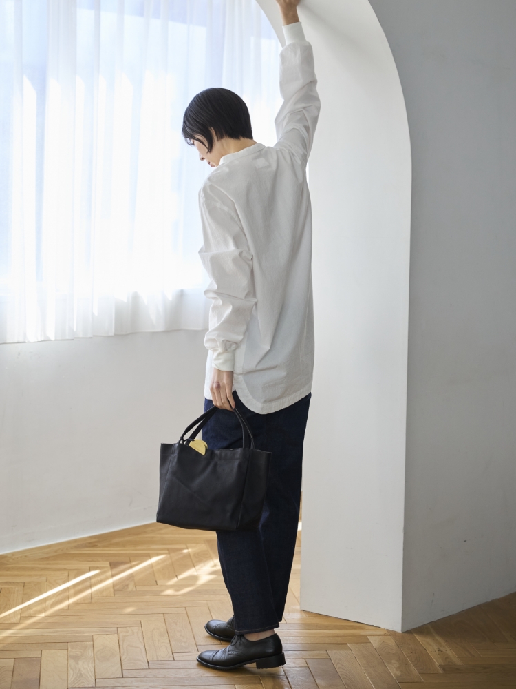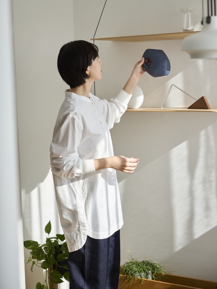 「家事のユニフォーム」として当店のつかい手の絶大な支持を集めているのが、福島の縫製工場サンユーニのファクトリーブランド「motone(モートン)」の看板アイテムともいえる「エンゲイシャツ」です。