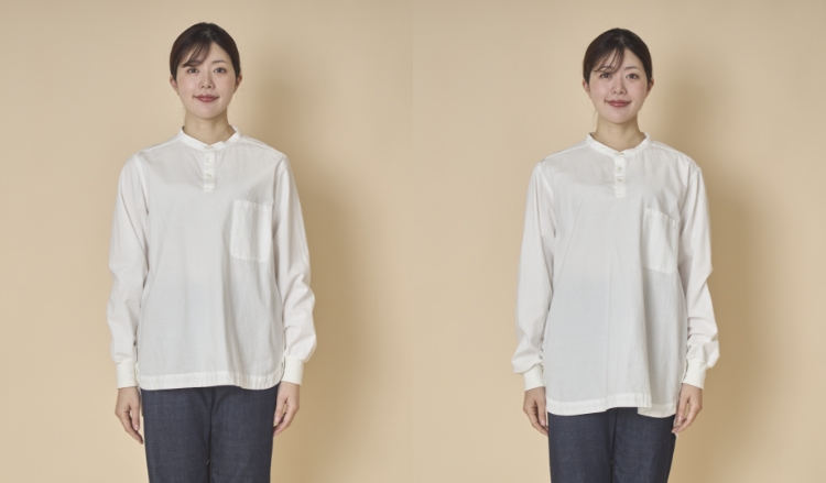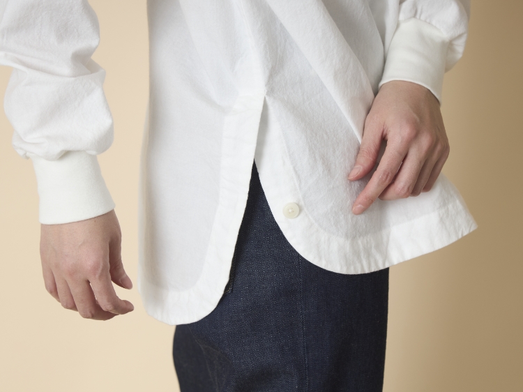シャツを着て家事や仕事をしていると、袖口をまくっていても、だんだん下がってきてしまって困ったことはないでしょうか。袖口がリブだと、皿洗いをしていても袖が下がってこないのてとても快適。また、肌寒い季節は袖口から風が入ってこないので、暖かいのも嬉しいポイントです。