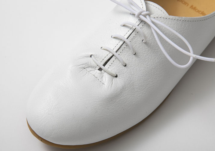 靴ひもがゴム製なので、自分の足幅にあわせてフィットするのも嬉しいところです。硬い革靴の型に自分の足を慣らすのではなく、靴が自分の足に合わせてくれる感覚で履くことができるのがいいなと思います。
