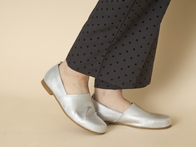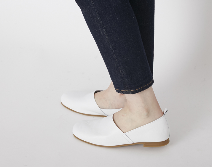 柔らかい革のスリッポンなので、足の形に靴が沿ってくれるのも嬉しいところです。硬い革靴の型に自分の足を慣らすのではなく、靴が自分の足に合わせてくれる感覚で履くことができるのがいいなと思います。
