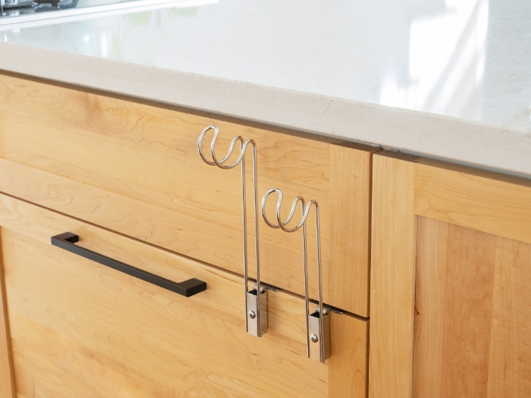 手を拭くのは一瞬ですが、一日に何度も行う動作。こちらのホルダーなら、タオルが落ちたり、腰をかがめたりせず、スムーズに手を拭くことができます。キッチンの限られたスペースを有効活用して、快適な調理空間を整えていきたいですね。