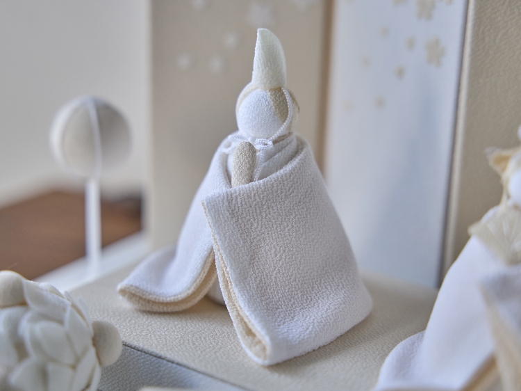砂糖菓子を思わせるかわいらしいフォルムと抑えた色合いが上品で、目にするたびにホッと優しい気持ちにしてくれそうな一品。デザイン性も伝統的な文化も大切にしたい、そんな現代人に寄り添う新しいお雛様はいかがでしょうか。
