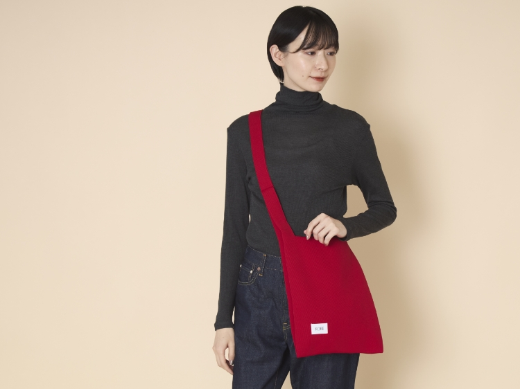 シンプルなデザインでありながら、発色の良いカラーリングが目を引くニットバッグ。いつものコーディネートに明るさをプラスしてみるのはいかがでしょうか。