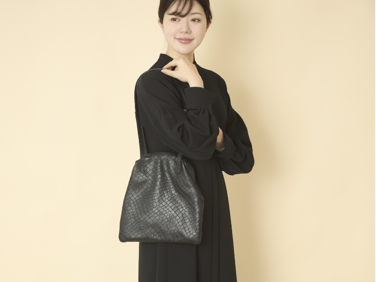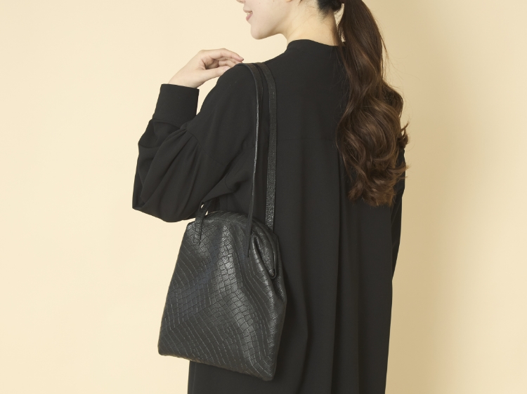 こちらは、上質なイタリアンレザーにクロコ柄の型押しを施しています。スタイリッシュな雰囲気で、装いのポイントになってくれます。