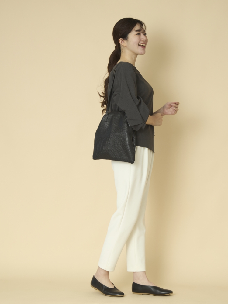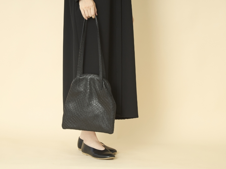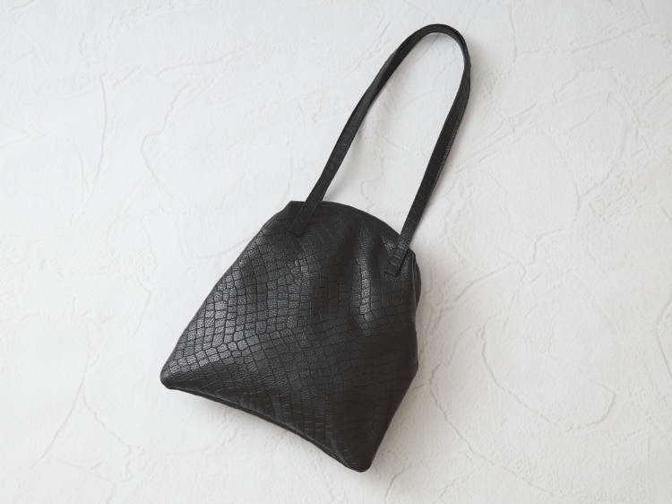 クロコの型押しを施したイタリアンレザーは使い込むほどの艶が出て、エレガントな雰囲気に。少しフォーマルなシーンでも重宝します。