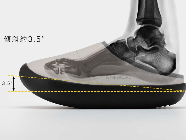 そうした方にもぜひお試しいただきたいのが、履くことで坂を上っているような運動効果が自然と得られる&MEDICALの「KAMOLEG 3.0」です。傾斜が付いた特徴的なソールが、平らな場所を歩くという日常動作の負荷を無理なく高めます。屋内外で使用できる為、通勤時間や家事時間での「ながらエクササイズ」を叶えてくれる商品です。