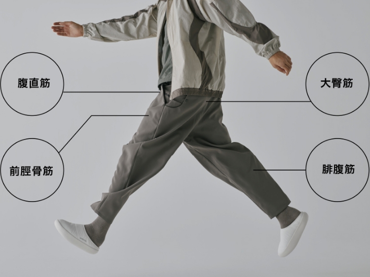 ただ、日常に取り入れようにもいつもの装いと合わなければ難しくなります。そこでこちらは、運動靴っぽさのないシンプルなデザインを追求。歩きやすさもファッション性も両立しています。