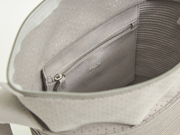 見た目はスエードそのものですが、実は最先端の技術によって生み出された高機能素材を使用したこちらのバッグ。細いブレードを丁寧に縫い合わせたデザインは、これまでのMNNGのバッグに比べてほんのり女性らしさもあり、1年中コーディネートに華やかさを添えてくれると思います。