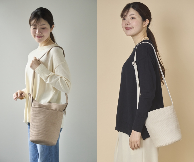 ウルトラスエードをテープ状の紐(ブレード)にして、渦巻き状に縫い上げて生まれた新作は、細くカットしてもほつれず、耐久性に優れているという素材の特性を最大限に生かしたデザインです。広島の麦わら帽子職人によって、一つ一つ縫い上げられているというバッグ3型の受注会を開催いたします。