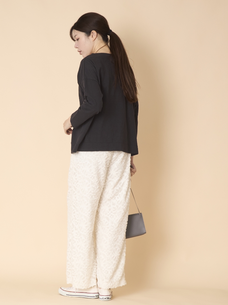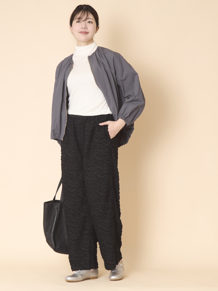 denicher/モノトーンフラワージャガード イージーパンツ 立体感のあるジャガード生地でほどよくきれいめなイージーパンツ