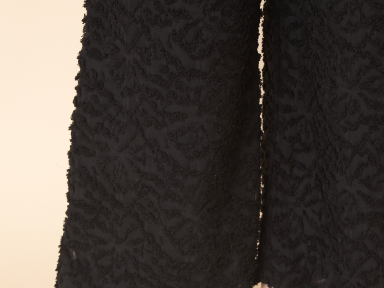 よく見ると、立体的な花柄になっている生地には遊び心がありますし、無地の服に慣れている方でも違和感なく取り入れられると思います。