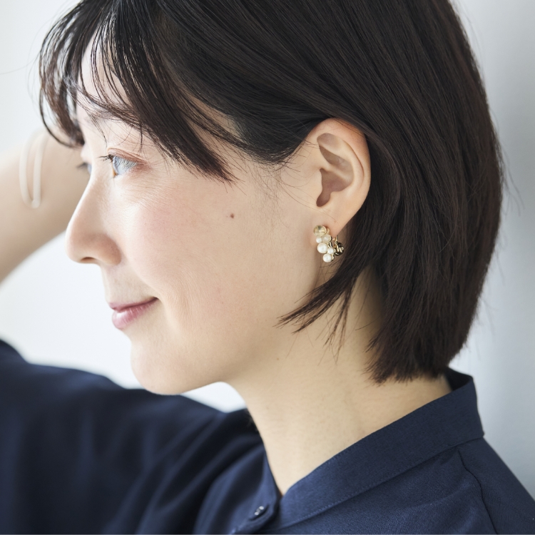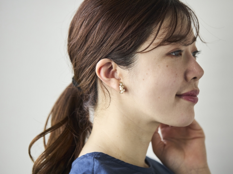 「顔のくすみが気になる」とお悩みの方は多いですよね。耳まわりのアクセサリーは、そんな時のお役立ちアイテムでもあります。こちらのイヤリングをプラスするだけで、顔まわりがぱっと明るくなります。