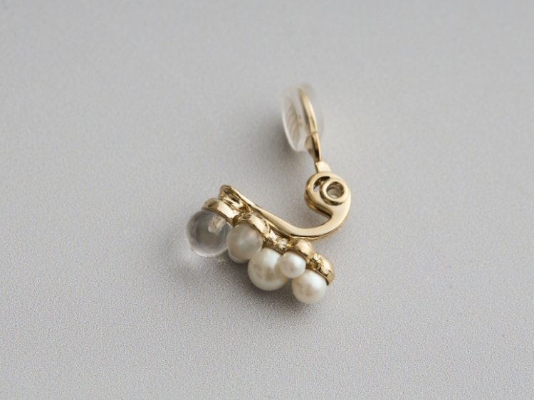 ネジ式の金具は痛みが出て、長時間着けられないこともありますが、こちらのイヤリングの金具はクリップタイプ。シリコンカーバーが付属しており、耳を面で優しく挟むので、痛みが出ず一日中快適に着けられます。耳たぶの厚みに合わせて挟み具合の調節がしやすく、着けやすく外れにくいのも魅力です。