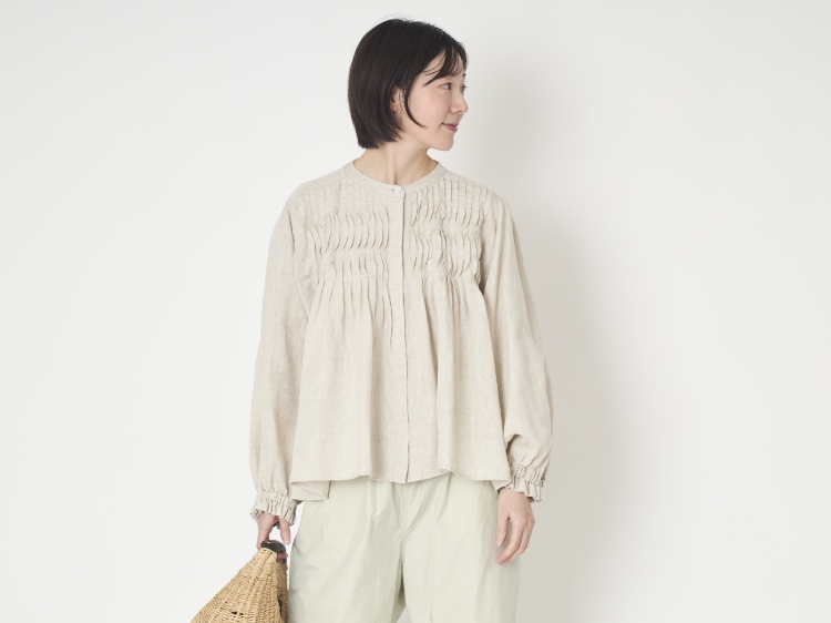 ubasoku/ウェーブピンタックブラウス ゆったりと風通しのよいリネン100%生地のブラウス