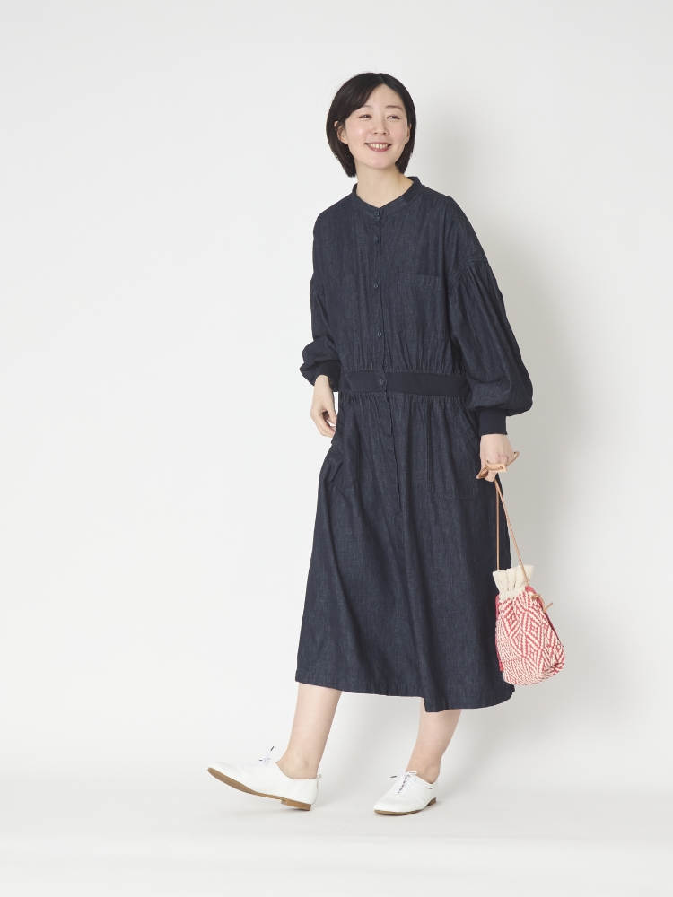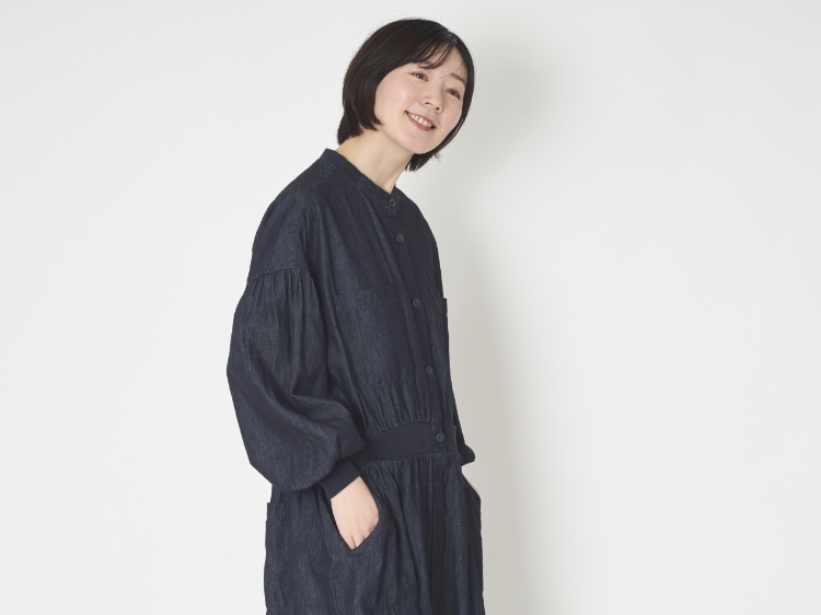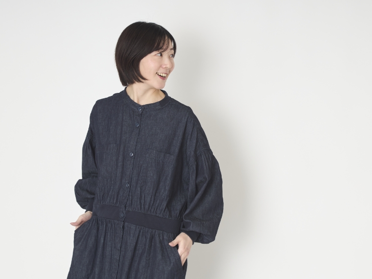 ubasoku(ウバソク)のワンピースは、リネン混のデニム素材で、カジュアルに気負わず着られるのが魅力的。