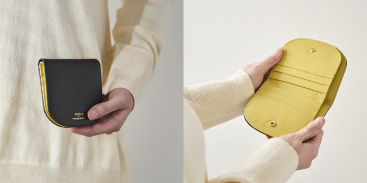 現金やカード、レシートなどがちゃんとおさまり、コンパクトなサイズでかさばらずに持ち歩ける2つ折り財布の良さはそのままに、お好みの色と使いやすい色の両方を組み合わせたバイカラー展開は、「ピンとくるお財布が見つからない……」とお悩みの方に、ぜひおすすめしたい一品です。