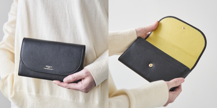 革の卸業を長年やってきた問屋さんが始めたブランド、MUZICA VITA(ムジカヴィータ)のお財布は、カラーバリエーションが豊富なところが魅力です。お財布を選ぶ際に迷うポイントの一つに、「好きな色で選ぶか、使いやすいベーシックな色を選ぶか」があります。バイカラーのシリーズはそんなお悩みを解決できるのがいいなと思います。お財布を取り出した時と開いた時で気分が変わる、わくわく感のある一品です。