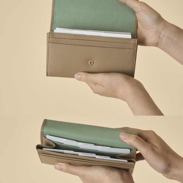 ナチュラルで柔らかい印象を与えるCAFEMOCHAは、内側が爽やかなミントグリーンです。