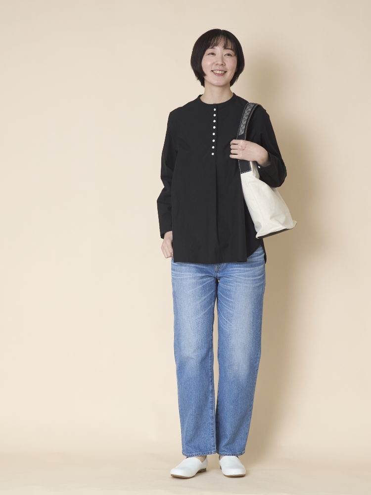 シンプルなフォルムに手織り生地のアクセント