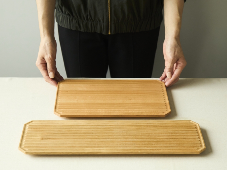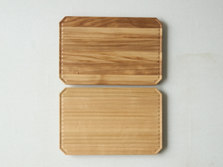 一本の木が、お盆などに加工して使えるような大きさに育つまで、約100年ほどかかるんだそうです。一枚木で作るよりもお求めやすい価格になっているだけでなく、材を無駄なく使うことで希少な資源を無駄にしないよう、ものづくりをされていらっしゃいます。