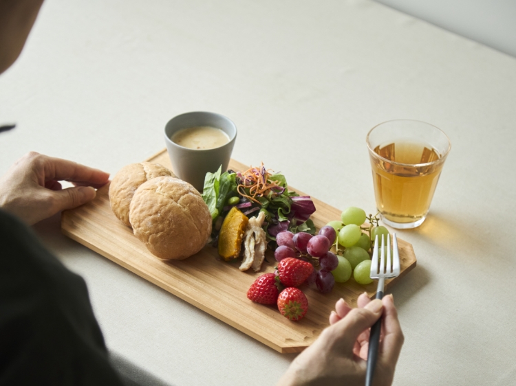 朝食でパンやサラダ、ヨーグルトなどを食べる時、それぞれ盛り付けると器の洗い物が増えてしまう……というお悩みをお持ちの方も多いはず。このプレートなら、これ1枚で賄えます。