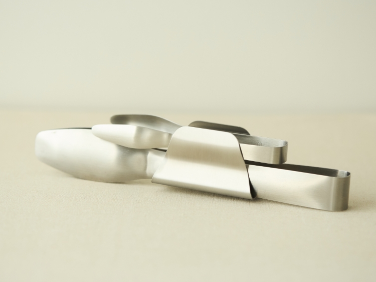 実は小さなストレスだった、留金のないトングの収納問題。わざわざ専用のアイテムを用意するほど?と思うかもしれませんが、トングを置く時や収納する時のわずらわしさを解消してくれます。調理中にも食事中にも活躍してくれるアイテムです。