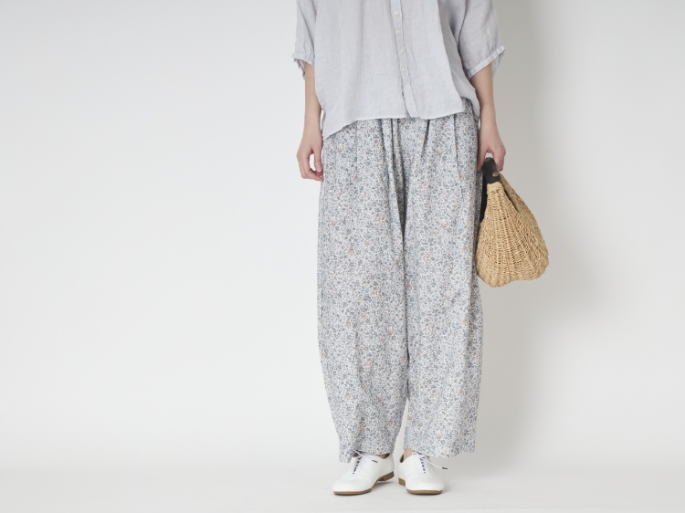 涼しさを感じさせる小花柄のデザインも、こちらのパンツの魅力。細かい花柄は程よい上品さがあります。