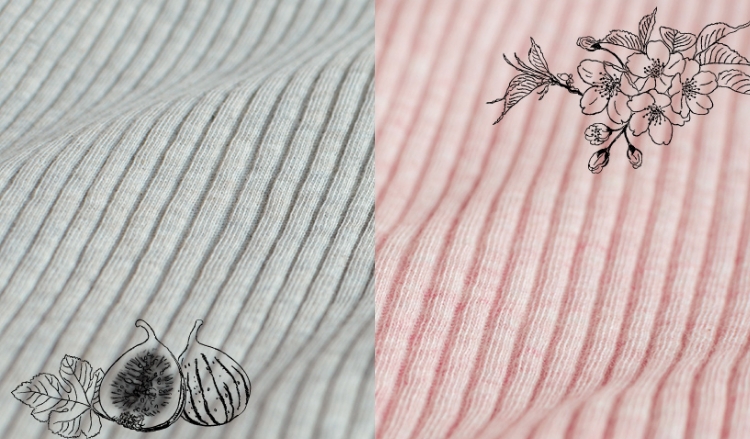 グレーはいちじく、ピンクはさくらの色素で染められています。