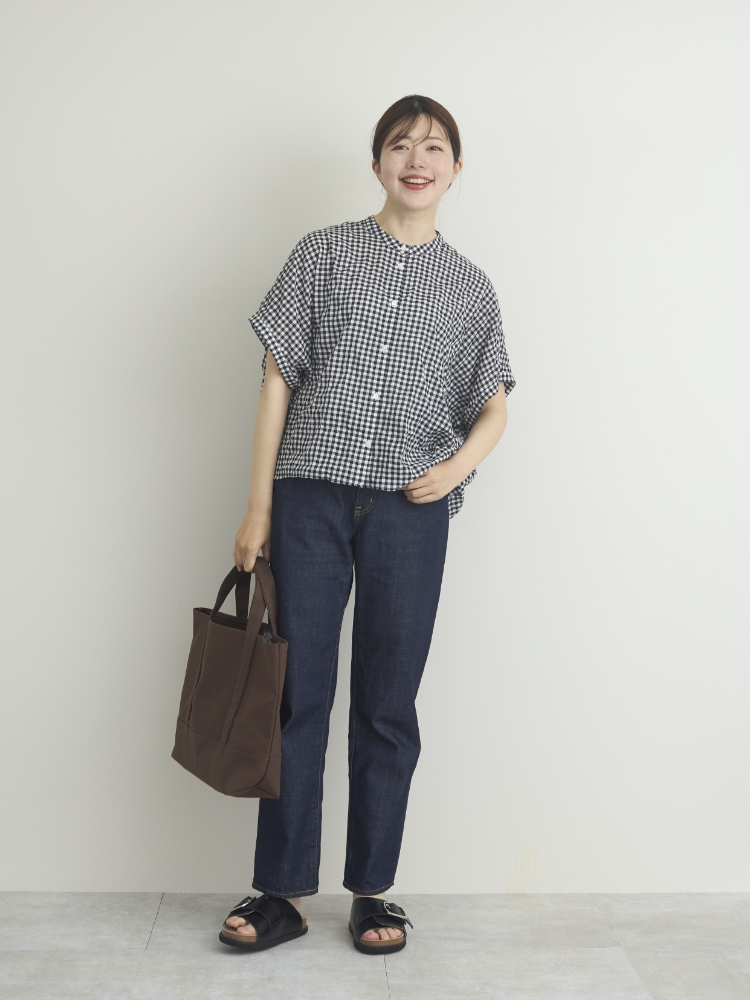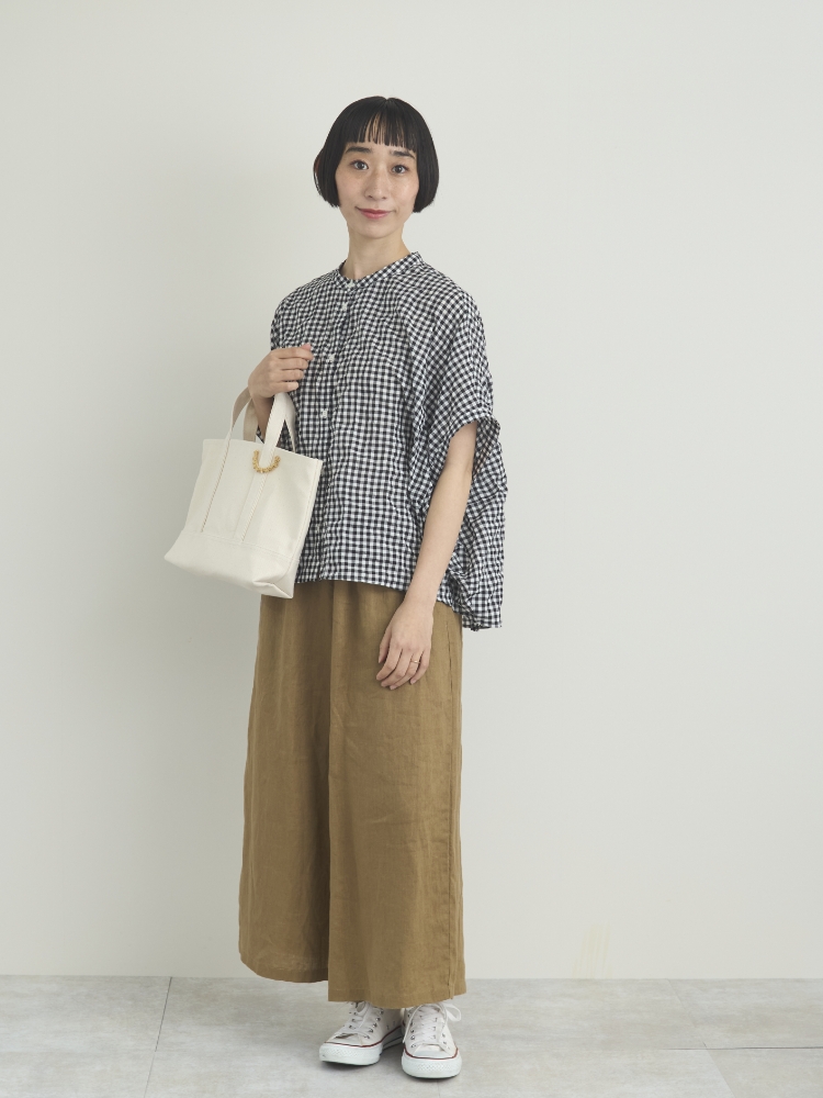 ギンガムチェックはホワイト×ブラックのスタンダードな組み合わせ。大きすぎないチェックで子供っぽく見えず、清潔感があります。