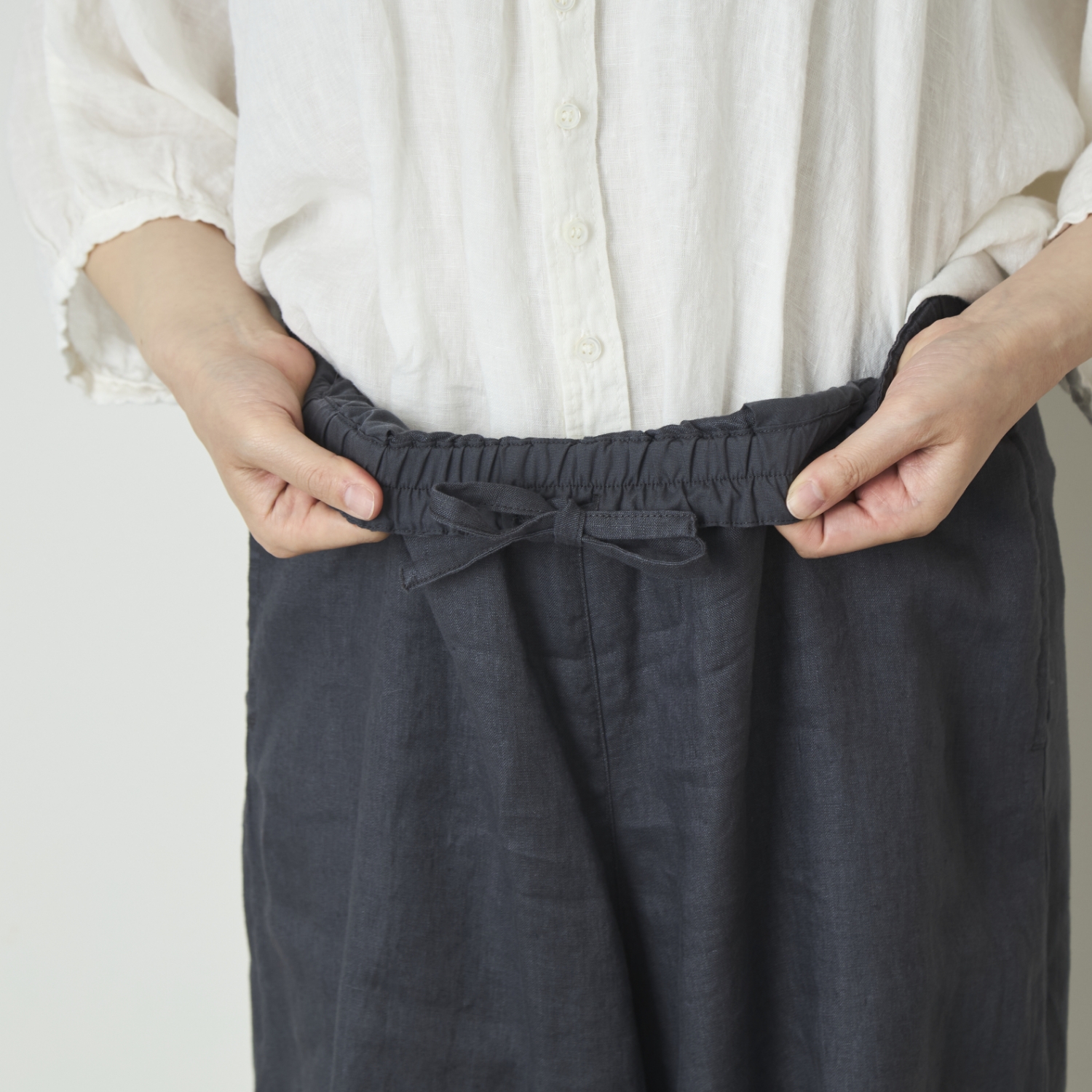 リネンの涼しさをより実感できるようにと考えて、裏地は付いていません。日にかざすとほんのりと透け感がありますが、実際に穿くと透けは全く気になりませんので、ご安心ください。