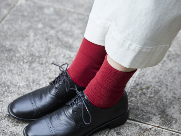 履き口にゴムを使っておらず、靴下に必ずある締め付けがありません。足がむくんでしまっても安心です。足首にやさしくフィットするのでストレスフリーな履き心地。気分やファッションに合わせて、履き口を折り返して履くこともできます。足にゆったりフィットするように編まれているため、締め付け感はないのですが靴下がずり落ちにくいです。